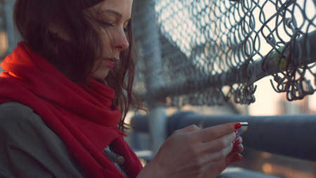Young girl with a phone on a bridge in New York City
