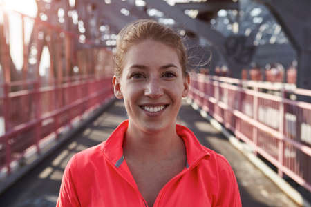 Portrait of young woman outdoors, smiling