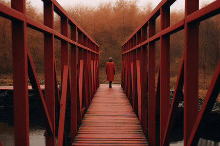 Captivating Encounter: Exploring a Majestic Red Wooden Bridge --ar 3:2