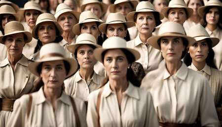 Multiple women of various ages and ethnicities standing closely next to each other in a group.