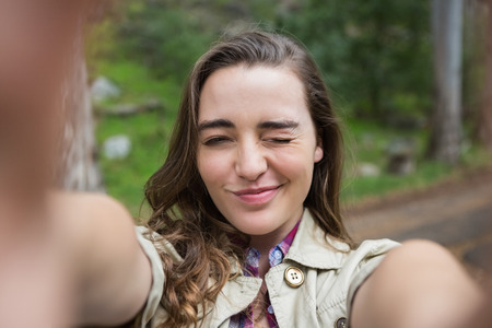 Woman taking selfies in the countryside