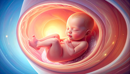 Ethereal depiction of a fetus in a protective sphere. Concept of beginning of life, protection, and prenatal growth.