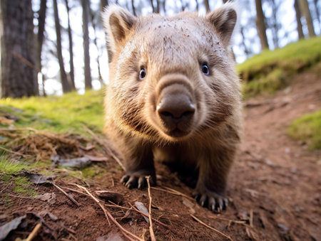 A breathtaking shot of a Wombat his natural habitat, showing his majestic beauty and strength.