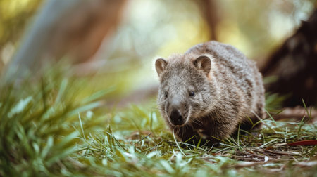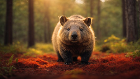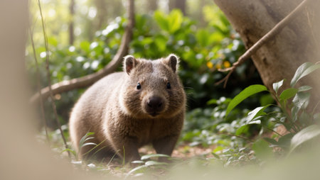 AI Generated. Tranquil Wombat in Lush Forest Setting - Capturing Earthy Movements in Soft Light
