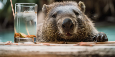 wombat is on summer vacation at seaside resort and relaxing on summer beach
