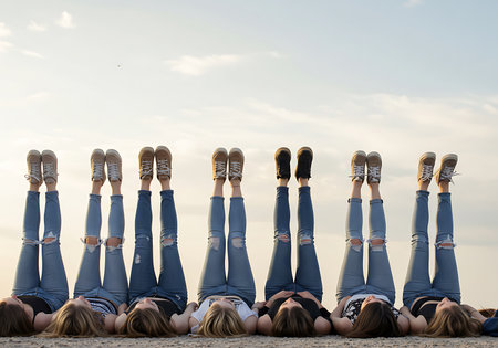 A group of teenage girls are lying on a grassy field, with their legs in the air. Generative Ai