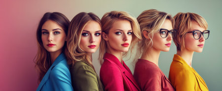 A captivating image of five stylish young women in colorful blazers, showcasing diverse beauty and modern fashion, ideal for various creative projects.