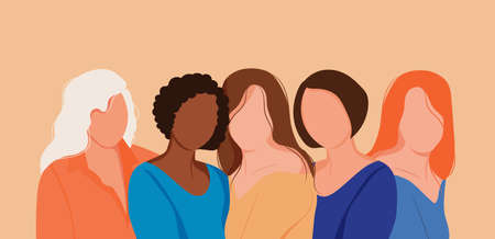 Group of women with different skin colors on beige background. Women's day