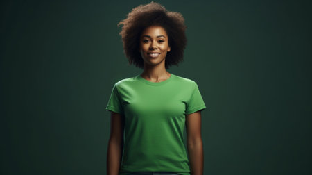 An Afro American woman in a green t-shirt