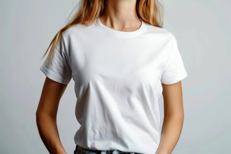 Woman in white T-shirt on isolated background Mockup. generative ai.