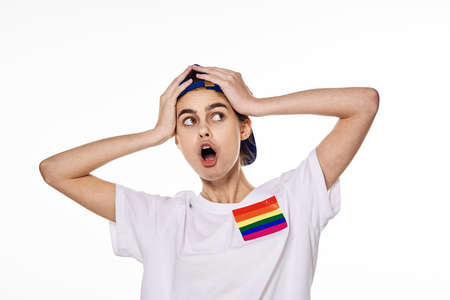 woman wearing white t-shirt lgbt flag inventor community
