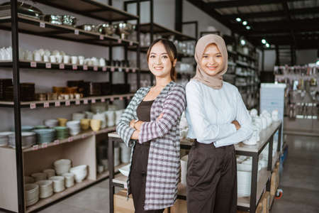 Were confident in our ability to create. Cropped portrait of two attractive young female artisans standing with their arms crossed in their workshop.