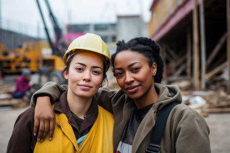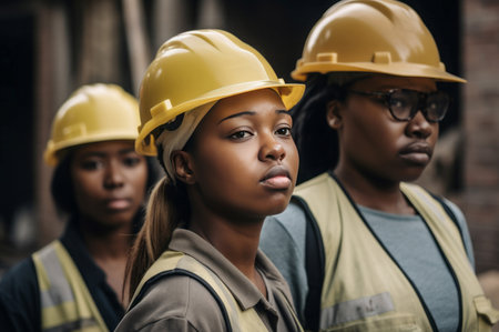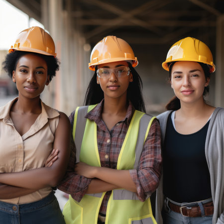 inclusiveness and equity concept in a portrait of confident american multicultural female engineers in helmets at construction site