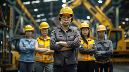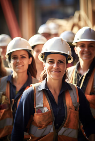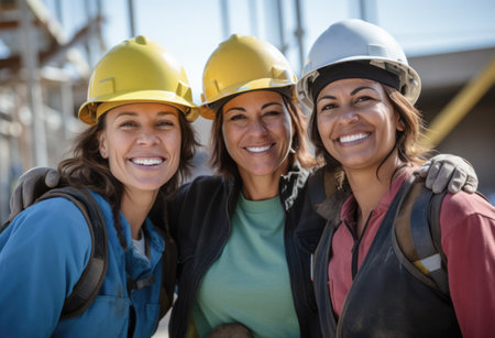Group diverse female construction workers in safety equipment. Engineer builders project women team. Generate ai