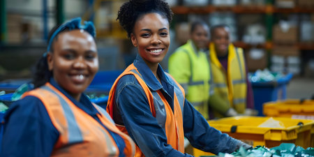 Cultural Diversity in Action: Waste Sorting Facility Workers Collaborate Efficiently to Sort Recycling Materials. Concept Waste Management, Recycling Workers, Cultural Diversity, Collaboration