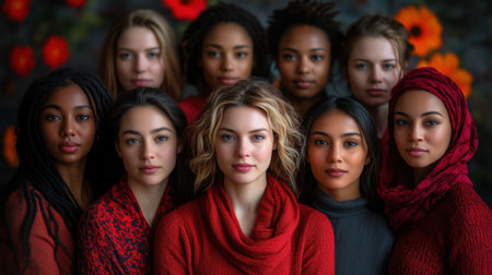 Group of diverse women wearing red clothing, united for international women's day, promoting female empowerment and diversity. Ai generated