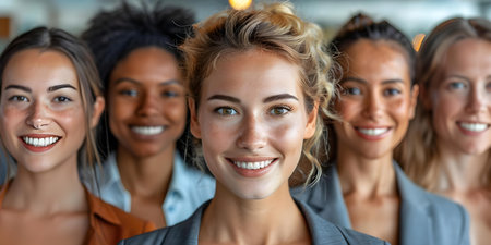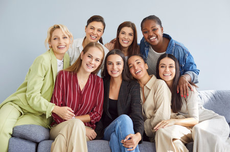 Diverse group of smiling women showcasing friendship and unity