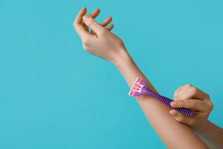 hair removal body care depilation with razor. skin cosmetology with Latin Cuban and Moroccan woman