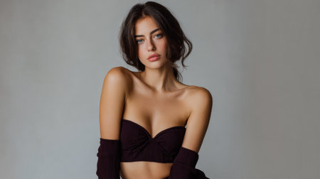 Woman s figure in black lingerie with a minimalist design neutral studio background