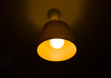 Glowing ceiling lamp at night