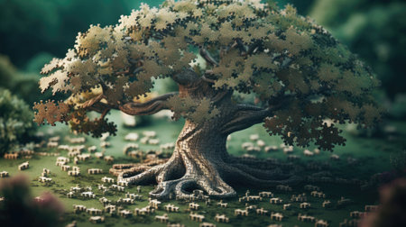 A vibrant, artistic representation of a tree made from colorful confetti on a white background, symbolizing creativity and nature.