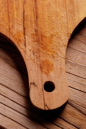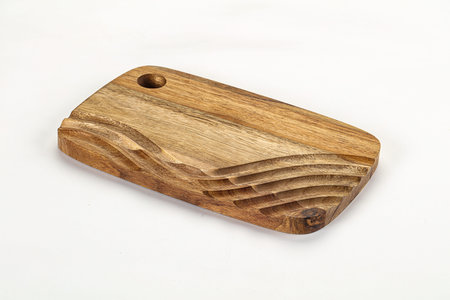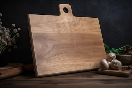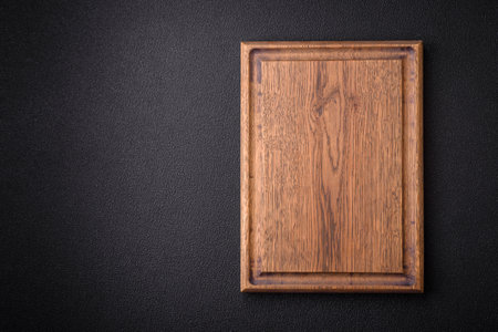 Empty wooden cutting board for preparing ingredients for preparing a delicious dish. Kitchen utensils