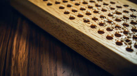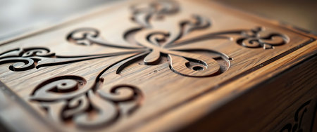 Appreciate the beauty and artistry of carved wood patterns with this close-up image. Proper lighting techniques are used to showcase the precision and intricate details of the carving process.