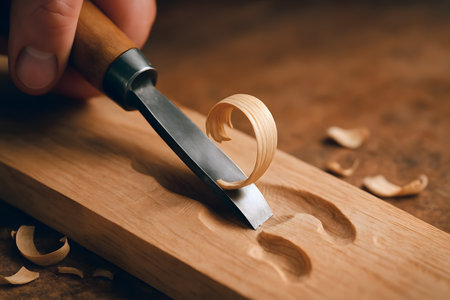 Craftsperson expertise in carpentry shown through precise cutting and carving generated by artificial intelligence