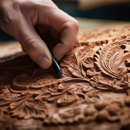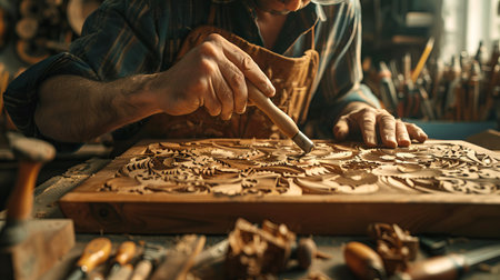 A skilled artisan meticulously carves intricate details into a wooden piece, showcasing the beauty of craftsmanship and the dedication involved in creating fine art.