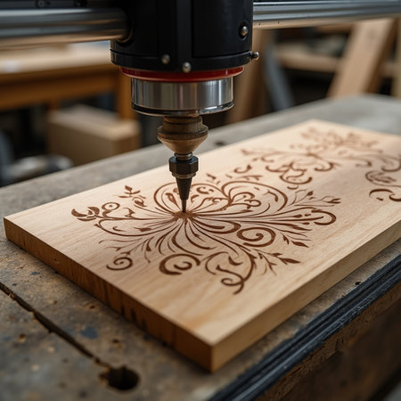 CNC Router Cutting Intricate Design in Wood, Demonstration of Technological Advancement
