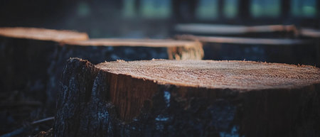 Forest pine trees log trunks felled by the logging timber industry round form