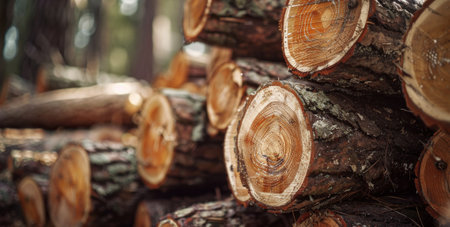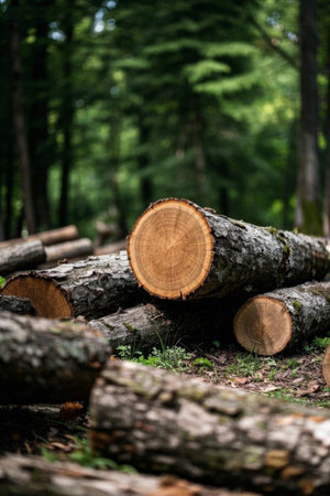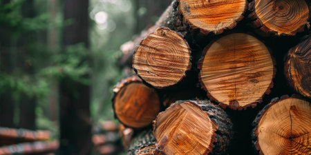 Log materials piled in the forest