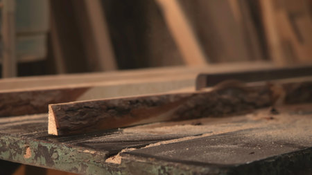 wood lumber from sawmill material in carpenter workshop