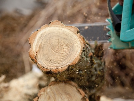chainsaw blade cutting the log of wood