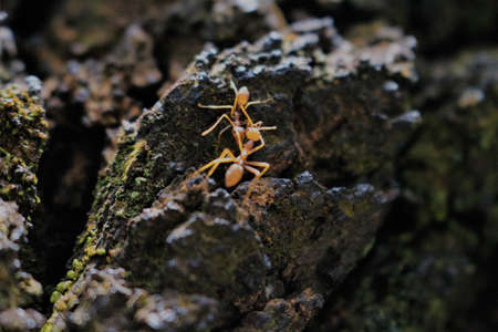 Closeup of ant on the tree bark background