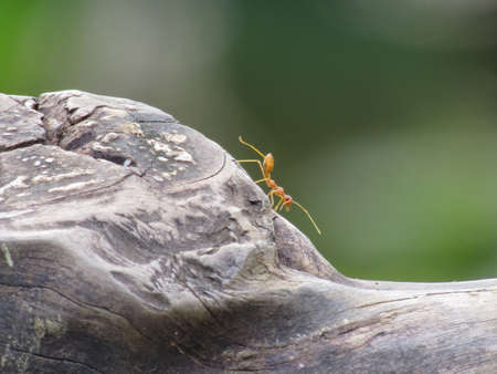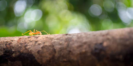 Group of red ants walking on a log in the forest. teamwork concept