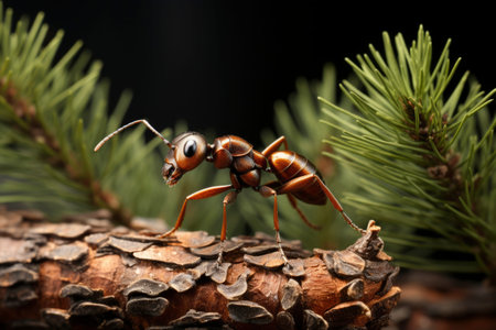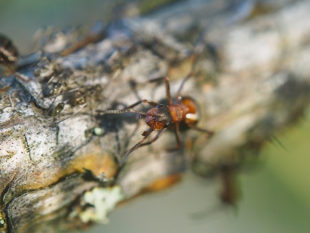 red ant on a tree close up