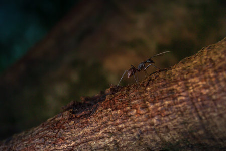 ant on a tree branch in the forest