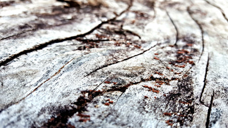 Ants run along the hemp of an old tree