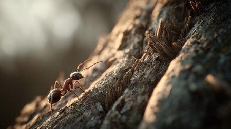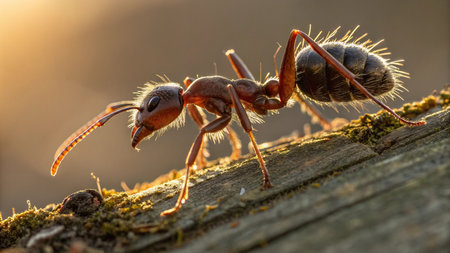 ant on a log in the sun. close-up. macro