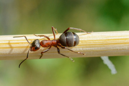 Ant on a round stick. Photographed close-up.