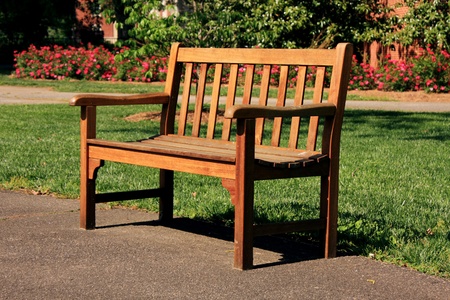 Photograph of a wood bench on a park