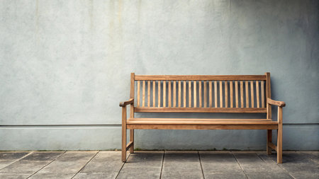 a white bench is positioned against a plain concrete wall, showcasing a dark silver and brown color scheme. the architectural focus of this shin hanga-inspired scene lies in the reinforced concrete construction, orderly symmetry, and minimalist abstracts created with wood elements. ai generated