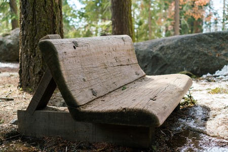Wooden bench in Sequoia National Park, California, USA