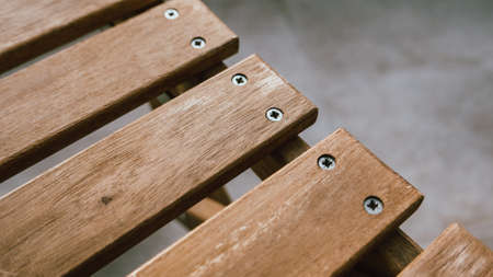 Wooden deck chair detail, close up with selective focus