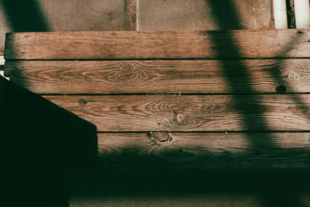 Warm tones and natural grain of aged wooden planks top view. Detailed view of a wooden plank surface with beautiful textures and shadows from above.