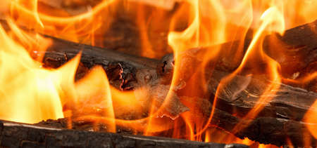 Burning wood in a fireplace. Abstract background and texture for design.