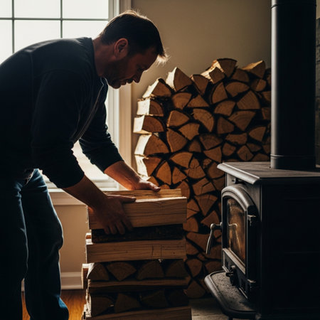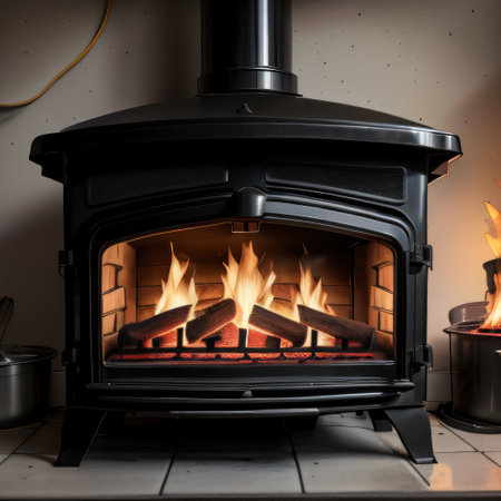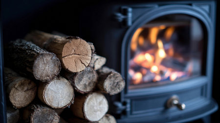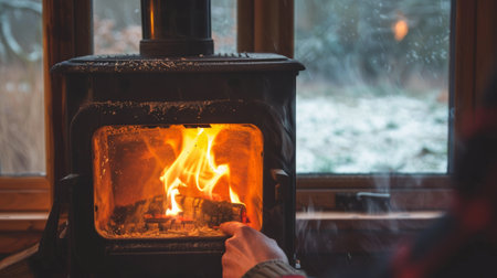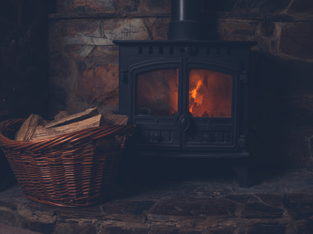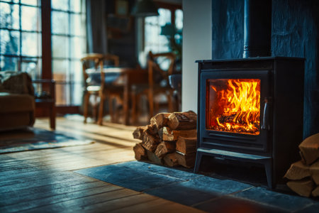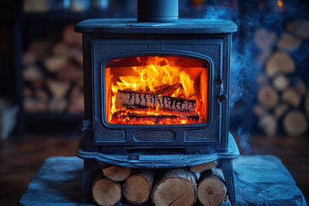 A stove uses logs to create soft heat on a cold winter day in a home setting.