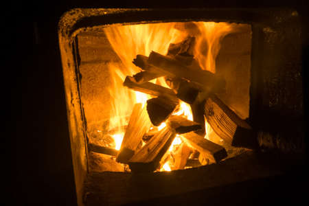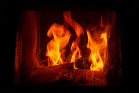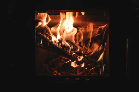 Blazing and warming fire in the stove.