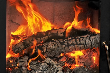 burning fire in the fireplace